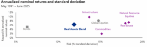 The diversification benefit has been evident in 2025. Using indexes, a balanced portfolio that invests in natural resource stocks, infrastructure stocks, and real estate stocks (the way we target Real Assets in Harvest portfolios) this year is up ~13.6%, while a blended portfolio of stock and bond indexes is up ~8.4%.