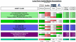This week The Joseph Group hosted clients and friends of the firm at our final “Portfolios and Pints” event of the year. As is annual tradition we looked back at the year and followed this with an update to TJG’s “Capital Market Assumptions.” That’s a ten-dollar phrase for “this is what we think asset classes will do over the next decade.” Why do we do this? Well, for one, we realize that financial plans aren’t written in months and quarters. They’re written in years and decades. Ultimately, we want to use the best research available to us to answer the question everyone is ultimately asking as it relates to their finances, “Does my plan work?”.