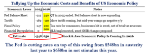 A second area of interest to us is the coming deluge of government stimulus through a mix of deregulation, monetary policy, and tax cuts. The table below shows just how much the deck was stacked against the economy last year. The Fed was shrinking their balance sheet, tariffs were being implemented, and a higher level of taxes for both consumers and businesses were all working as brakes on the economy. The calculus has largely flipped in 2026, which could have a significant impact on economic growth.