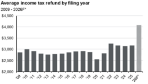 Lest you think a lot of this gets lost in the shuffle of corporate tax filings, the impact for consumers is going to be meaningful. JPMorgan recently shared the chart below that shows the average tax refund going back nearly 20 years. Expected refunds in 2026 are around 25% higher than the previous record year in 2022. This will likely have a major impact on those in this country who’ve been hit hardest by the post-COVID inflation regime that has not quite worked its way through the system.
